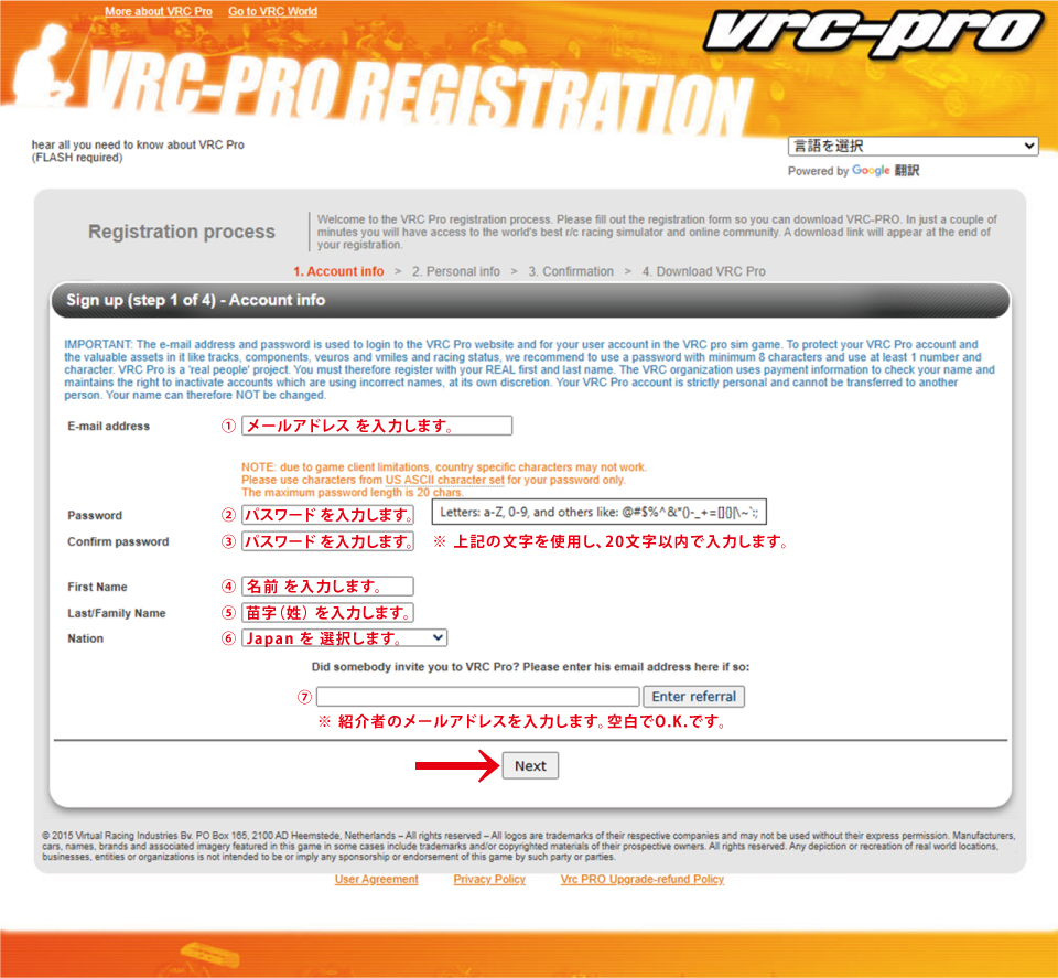 4. アカウント の 作成 の為に 下記 の 項目 に 個人情報 を 入力 します。