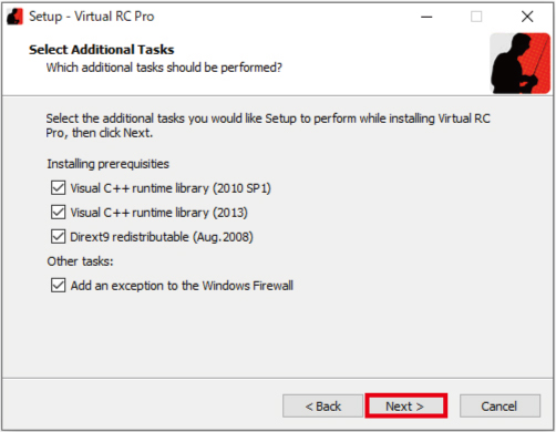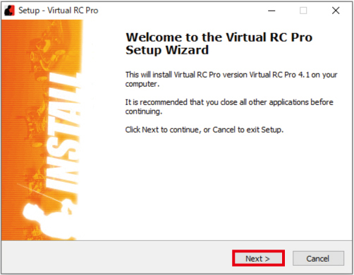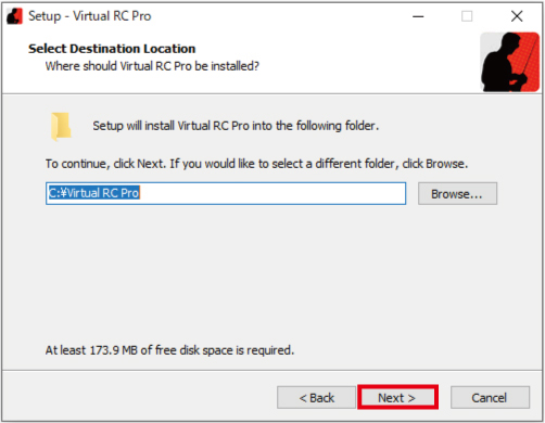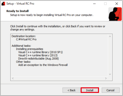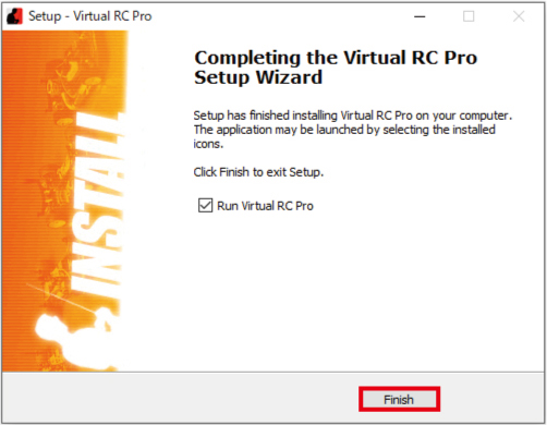 17. 「 Run Virtual RC Pro 」 の チェック を 外さず、 赤 枠部 の 「 Finish 」 を クリック します。