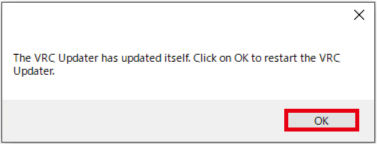 | 19. アップデーター の 再起動 を 行う為、赤 枠部 の 「 OK 」 を クリック します。 |