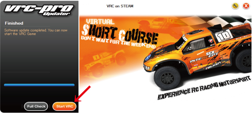 21. アップデート ( 更新 ) が 終了 し、赤 矢印部 の 「 Start VRC 」 を クリック します。